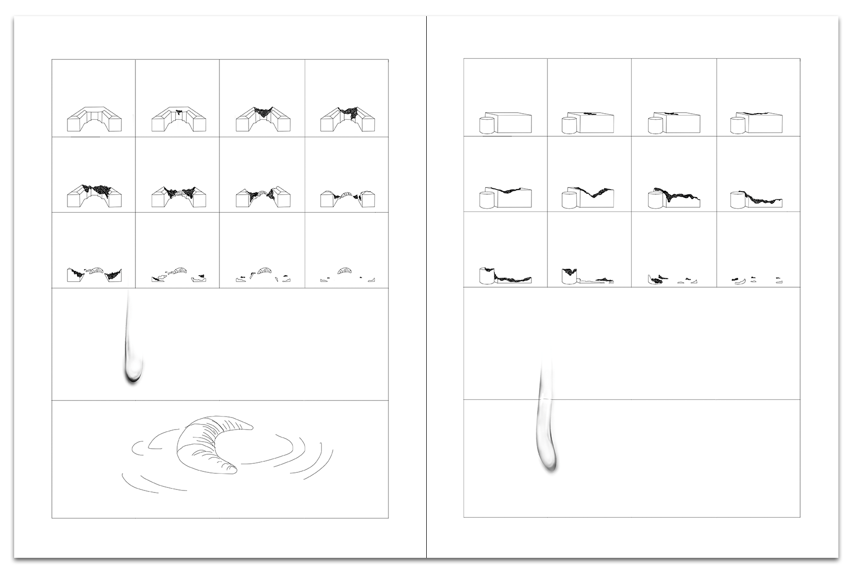 The disintegration of the salt sculptures of Superstudio’s installation, drop by drop.